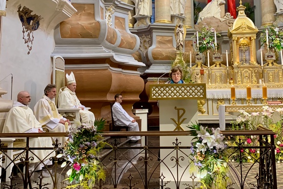 Homilijoje vyskupas S. Bužauskas kalbėjo apie atsiradusią mokinių drąsą skelbti Prisikėlusį Kristų – Šviesą mūsų gyvenimui. Tai skatina krikščioniškos meilės liudijimą. Carito organizacija tai atlieka per veiklius artimo meilės darbus. Tikinčiojo patarnavimas yra puikiausia evangelizacija, veiksmingas Kristaus-Šviesos nešimas kitiems.