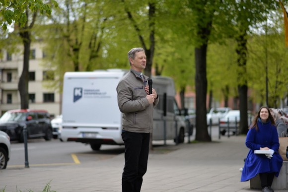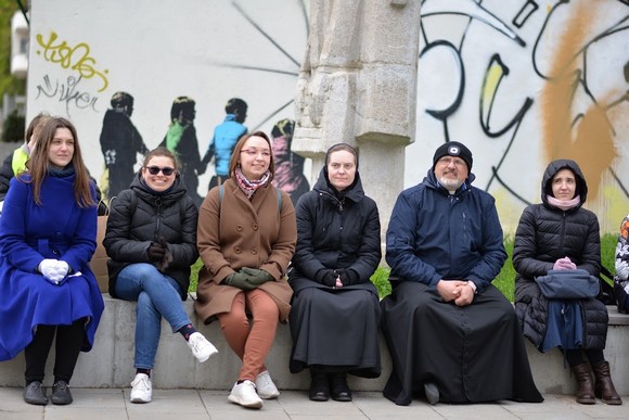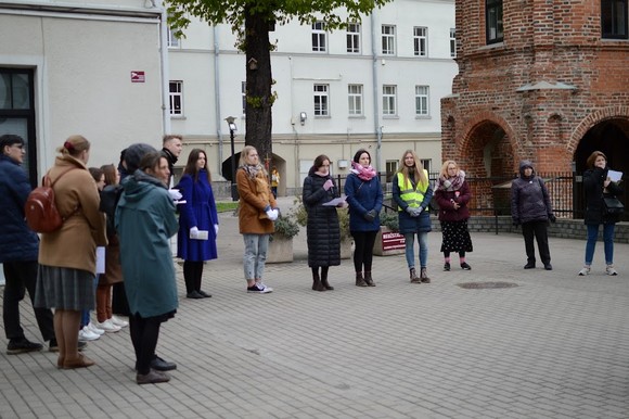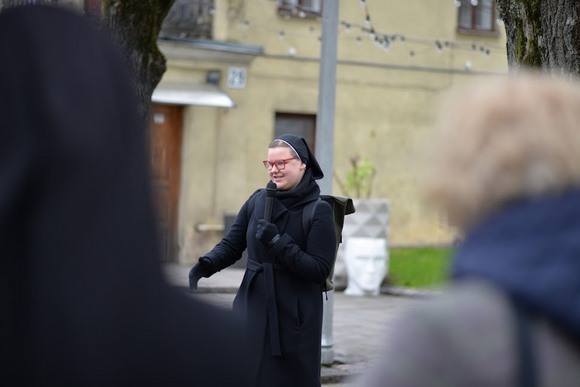 Šv. Ignaco Lojolos kolegijos kiemelyje dalyvių laukė sesers Adelės Pilipavičiūtės liudijimas apie pašaukimą į vienuolystę.