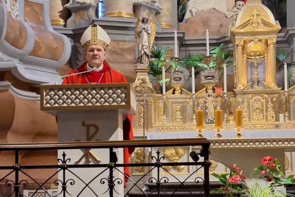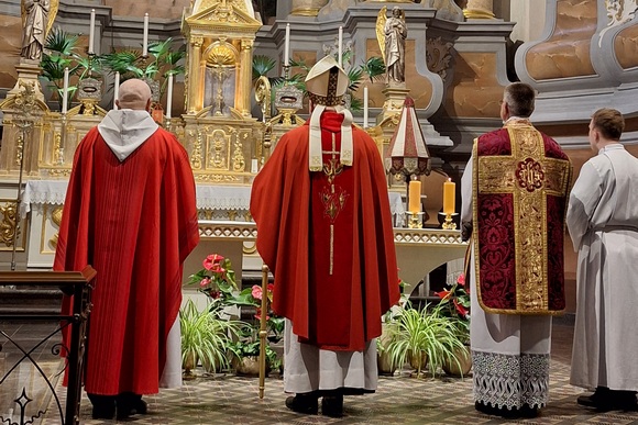 Vakaro Eucharistijai vadovavo vyskupas Saulius Bužauskas. Homilijoje ganytojas drąsino susirinkusiuosius nebijoti išbandymų, kurie ištinka mus, kai stengiamės mylėti. Šventoji Dvasia ne tik pirmuosius apaštalus, bet ir mus ragina eiti ir skelbti Kristų visomis aplinkybėmis, nešti žinią apie Viešpaties prisikėlimą, apie Jo pergalę prieš mirtį.
