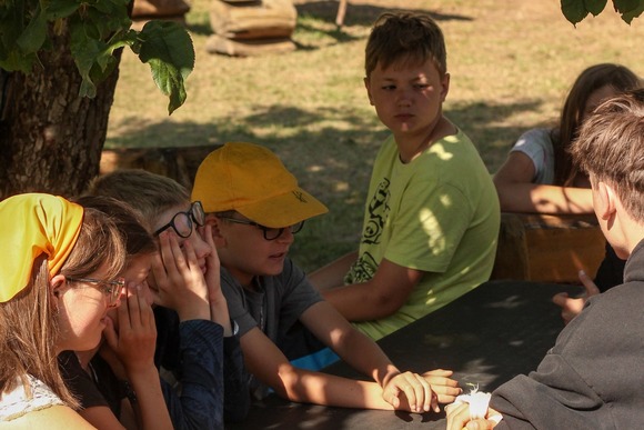 Pagal šiemetinės stovyklos temą „Tad drąsos, Moze“ stovyklaujantys vaikai gilinosi į Senojo Testamento Išėjimo knygoje aprašomą Įzraelio tautos išlaisvinimo iš Egipto vergijos istoriją.