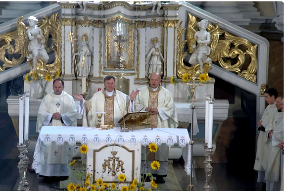 Katechezę prieš pagrindines pamaldas Šiluvos bazilikoje sakė Kauno arkivyskupo Kęstučio Kėvalo paskirtasis ir netrukus tarnystę pradėsiantis naujasis Šiluvos parapijos klebonas kunigas Žilvinas Zinkevičius.