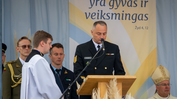 Padėkos žodį pabaigoje ganytojams tarė pirmą kartą į Šiluvą atvykęs Lietuvos kariuomenės vadas generolas Raimundas Vaikšnoras. „Tvirtos vertybės, tvirtas tikėjimas – tuo nesiekiame karo, o priešingai – taikos ir ramybės“, – be kita, sakė generolas R. Vaikšnoras, atkreipdamas dėmesį, jog šios vertybės teikia stiprybės ir laisvę ginančiai Ukrainai. Kariuomenės vadas padėkojo už Bažnyčios pagalbą ne tik kariams, bet ir jų šeimoms.