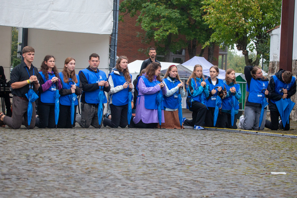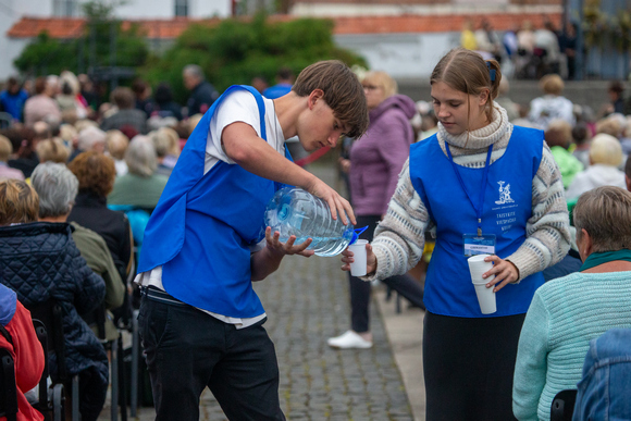 Visus aikštėje, kaip ir kasdien Šilinėse, suvienijo bendra Rožinio malda su seminaristu bei „Marijos radijo“ savanoriais. Šiluvoje šią dieną neretas maldininkas buvo lydimas, judėjo vežimėlyje. Piligrimams pagelbėjo, gera nuotaika ir vandens stikline, pasiūlytu maldynėliu dalijosi, tvarką ir maldos ramybę padėjo kurti jaunieji savanoriai.