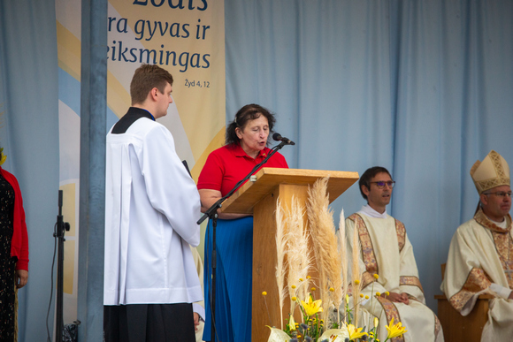 Eucharistijos liturgijos pradžioje Kauno arkivyskupas Kęstutis Kėvalas kreipėsi į minią piligrimų aikštėje, kurie, ganytojo žodžiais, išpildė Dievo ir Jo Sūnaus Motinos troškimą, išsakytą prieš keturis šimtmečius, šiuose laukuose matyti Viešpatį garbinančius. Ši svajonė išsipildo per žmones, kurie čia meldžiasi, nuo seno Šiluvoje prašo Ligonių Sveikatos užtarimo, patiria daug stebuklų, semiasi stiprybės nešti artimųjų ligos ir kančios naštą.
