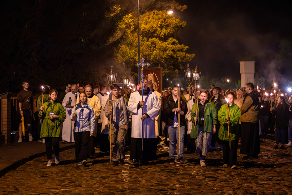 Su Dievo žodžiu ir Septynių Marijos skausmų apmąstymu bei žiburiais rugsėjo 14-osios, šeštadienio, vakarą Šiluvą apjuosė Žiburių procesijos dalyviai.