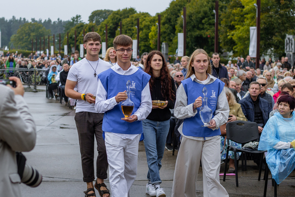 Švenčiamoje Eucharistijoje giedojo Kauno arkikatedros bazilikos choras „In vivo Dei“, vadovaujamas Ramūno Baranausko. Atnašų procesijoje visų vardu duoną ir vyną atnešė jaunieji savanoriai – net 70 jaunų žmonių šiemet dovanojo savo laiką Dievui ir žmonėms Šiluvos atlaiduose.