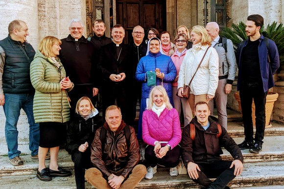 Nuotr. Kauno arkivyskupijos piligrimai prie Švč. Mergelės Marijos didžiosios bazilikos Romoje, 2023 m. lapkritis