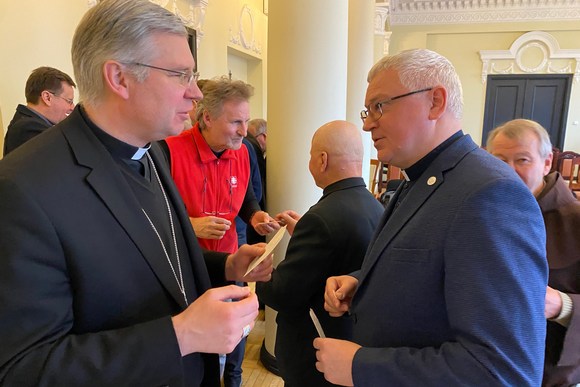 Platesniu žvilgsniu į Visuotinę Bažnyčią padėjo pažvelgti susitikimo svečias (dėl ligos negalėjus atvykti apaštaliniam nuncijui) Vilkaviškio vyskupas Rimantas Norvila, LVK nacionalinis delegatas Eucharistinių kongresų reikalams.