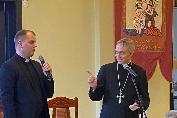 Kauno arkivyskupas Kęstutis Kėvalas, šiltai pristatęs garbųjį svečią, pabrėžė jo išsilavinimą, įgytą Vokietijoje ir Italijoje, svarbias pareigas ir patirtis, sukauptas darbuojantis greta dviejų popiežių – Benedikto XVI ir Pranciškaus.