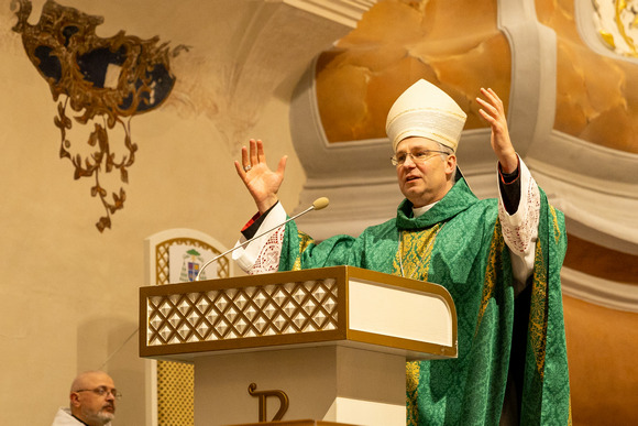 Eucharistijai vadovavo arkivyskupas Kęstutis Kėvalas. Homilijos metu su Eucharistijos dalyviais arkivyskupas pasidalijo mintimi, kad Jėzus, kaip sėjėjas, sėja žodį į visą žemę, ne tik į derlingą. Ganytojas teigė, kad, galima sakyti, derlingos žemės yra tik 25 procentai, bet kadangi duoda net šimteriopą derlių, tai Dievo malone derlius ženkliai viršija mūsų „nuostolius“.
