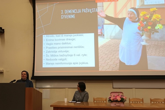 Klaipėdos universitetinės ligoninės kapelionas kunigas prof. dr. Saulius Stumbra pasidalijo mintimis apie demenciją kunigo, o VDU Katalikų teologijos doktorantė sesuo Dominyka Violeta Slepikaitė DP, dvasine asistente dirbanti Utenos socialinės globos namuose, – pašvęstųjų gyvenime. Monsinjoras doc. dr. Artūras Jagelavičius kalbėjo apie sakramentų teikimą žmonėms, sergantiems demencija.