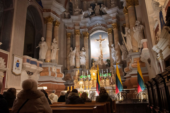 Artėjant Vasario 16-ajai ir šventinį saulėtą sekmadienį Kaune sklido švenčių džiaugsmas, o dvi didžiosios bazilikos mieste buvo atvėrusios duris specialiai maldai už Lietuvą.