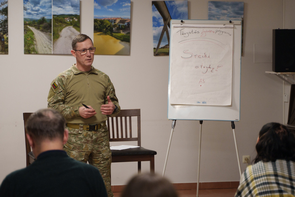 Ne tik duonos namų apsaugai pasidalijome, bet ir kalbėjome nerimą keliančia tema apie karą. Kariuomenėje tarnaujantis diakonas Audrius Jesinskas pasidalijo kario gyvenimo ypatumais bei priminė, kad karo nenorime ne tik mes, bet ypač jo nenori kariai.
