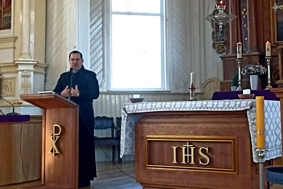 Susirinkusiai tikinčiųjų bendruomenei brolis Rastislavas šv. Mišių homilijos metu paliudijo, kaip svarbu atsiliepti į Dievo meilę ir augti joje. Nors nelengva daryti tai, ką moko Kristus, – pavyzdžiui, mylėti priešus, – bet toks yra Dievas, mylintis kiekvieną mūsų. Esi pasišventęs tarnystei ne dėl to, kad įtiktum Dievui, o dėl to, kad Jis tave myli. Ir tai augina tiek jauną, tiek seną. Visiems reikia augti nors pro truputėlį, po sprindį. Tai nevyksta automatiškai, o tik pamatant savo netobulumus Dievo meilės šviesoje.