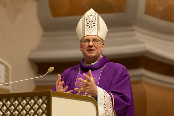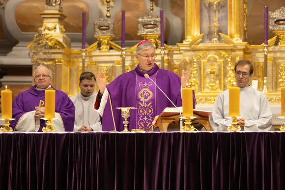 Eucharistijai vadovavo Kauno arkivyskupas Kęstutis Kėvalas. Homilijos metu arkivyskupas su tikinčiaisiais pasidalijo mintimis, kuo yra ypatingas žmogui duotas Dievo įstatymas ir kodėl žmogui svarbu jo laikytis.