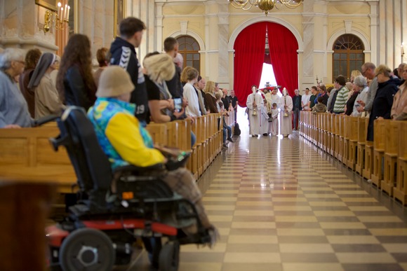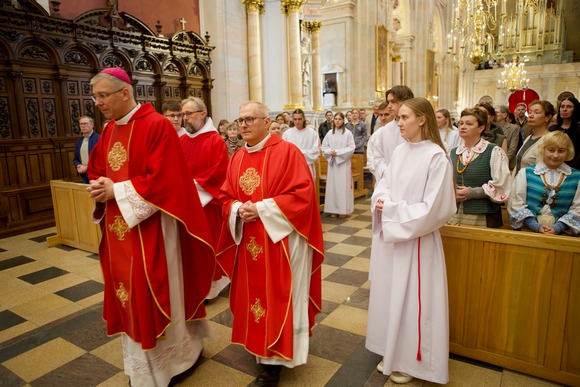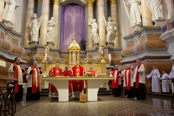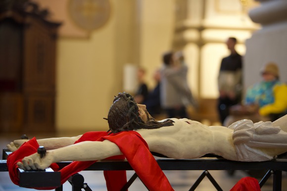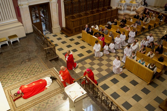 Didįjį penktadienį Kauno arkikatedroje bazilikoje Kristaus Kančios pamaldos prasidėjo nuolankiausia malda – arkivyskupas Kęstutis Kėvalas meldėsi tylomis, guldamas priešais altorių, tarsi suimdamas į save Jėzaus skausmą Jo apleistume Kryžiaus valandą...