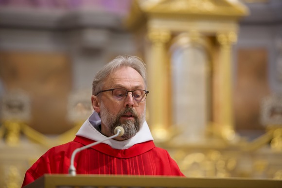 „Jėzaus kančios istorija ne tik apie Dievą ir žmogų, bet ir apie mus. Ir mes dalyvaujame Jėzaus mirtyje, esame jos dalininkais“, – sakė tardamas homilijos žodį vyskupas Saulius Bužauskas. Ganytojas atkreipė dėmesį, jog Jėzaus nukryžiavimas primena, kokia didelė yra mūsų išgelbėjimo kaina.