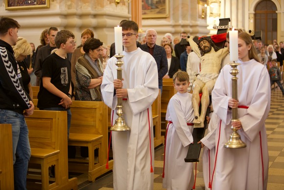„Padarytas blogis yra prisidėjimas prie Viešpaties kryžiaus“, – priminė šį vakarą vyskupas, paminėdamas ir tai, jog Dievas nenori mūsų pražūties, nepateikia „sąskaitos“ už padarytą blogį. Viešpats už tai sumokėjo savo Sūnaus mirtimi. Jis ant Kryžiaus prisiėmė visus žmogaus sunkumus. Niekas savo kančioje negali sakyti: aš esu vienas. Viešpats su mumis ir didžiausiame varge.