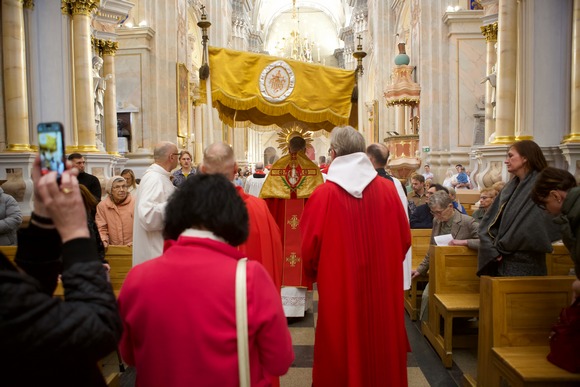 Liturgijos centre buvo šventojo Kryžiaus pagarbinimas. Visi buvo pakviesti ateiti ir pagarbinti Kryžių, pagarbiai atneštą nuo arkikatedros didžiųjų durų. Nukryžiuotasis kasdien ten pasitinka šventovės lankytojus, su šiuo Kryžiumi buvo pradėtas ir šių metų Jubiliejus arkivyskupijoje.