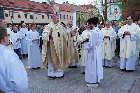 „Mes, krikščionys, turime spindėti šia žinia. Džiaugsmas turi veržtis iš mūsų širdžių!“ – ganytojišku paraginimu dalijosi arkivyskupasl