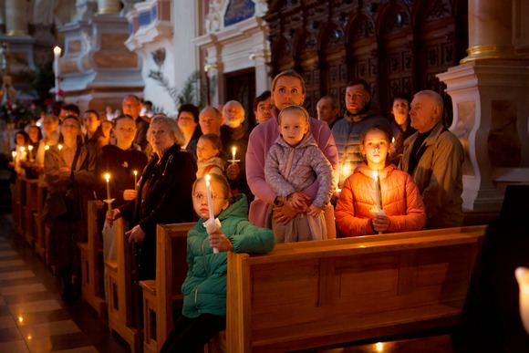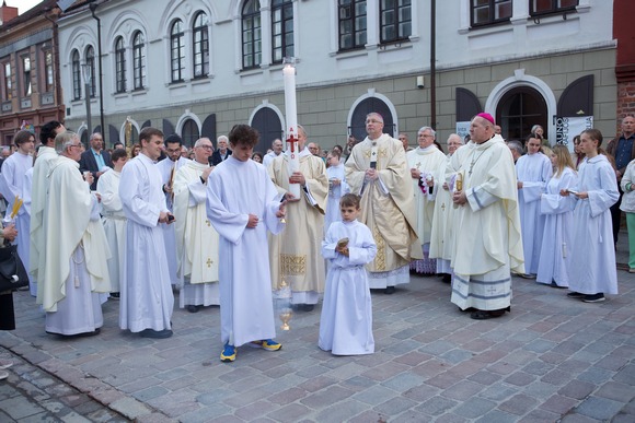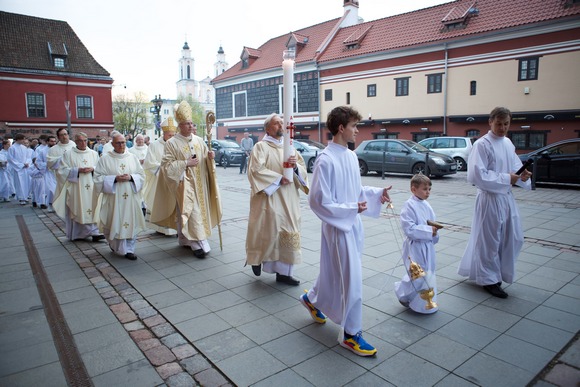 Kai po ugnies palaiminimo su Velykine žvake – Paschalu – procesija žengė į arkikatedrą, prieblanda nuo uždegtų žvakių žmonių rankose tapo išsklaidyta, nušvito veidai: Kristus tikrai mums šviečia!