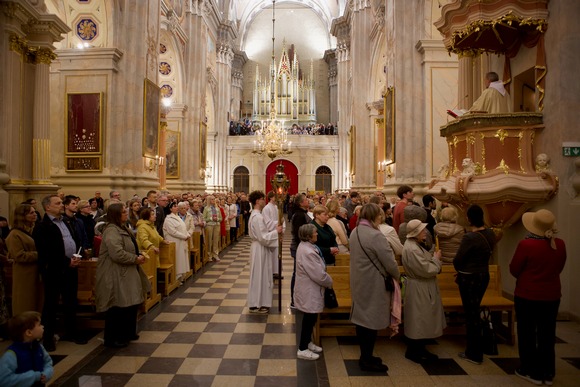 Šios Gerosios naujienos žmonės arkikatedroje klausėsi nukreipę žvilgsnį į amboną – Dievo žodis buvo labai arti, labai svarbus, pakeitęs žmonijos istoriją ir kalbantis bei laiminantis šiandien.