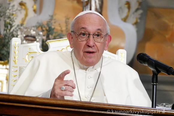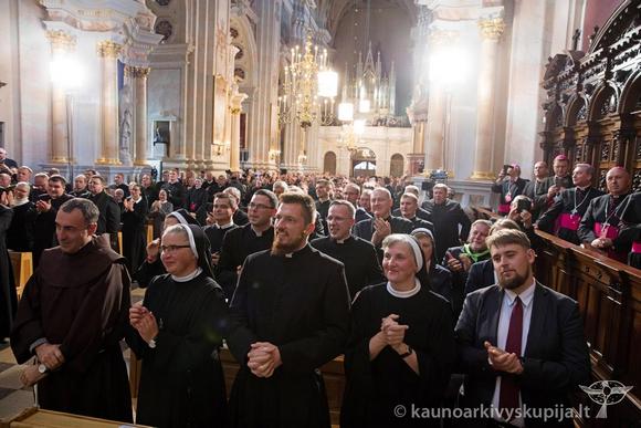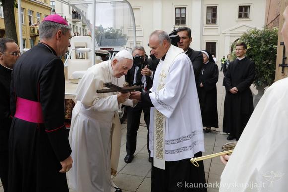 Ši katedra turi nuostabią garbę, kad būtent šioje vietoje Šventasis Tėvas Pranciškus kalbėjo ir mums, mūsų tautai – giedrai, šiltai, su humoru, kaip tėvas. Jautėme Šventosios Dvasios ir dangiškojo Tėvo artumą ir meilę mums, mūsų tėvynei Lietuvai“, – dalijosi liudijimu arkivyskupas Kęstutis Kėvalas, prisimindamas popiežiaus apaštališkąjį vizitą 2018 m. rugsėjo 23 d. Lietuvoje, kai Šventasis Tėvas, be kita, Kauno arkikatedroje bazilikoje susitiko su Lietuvos dvasininkais ir pašvęstaisiais.