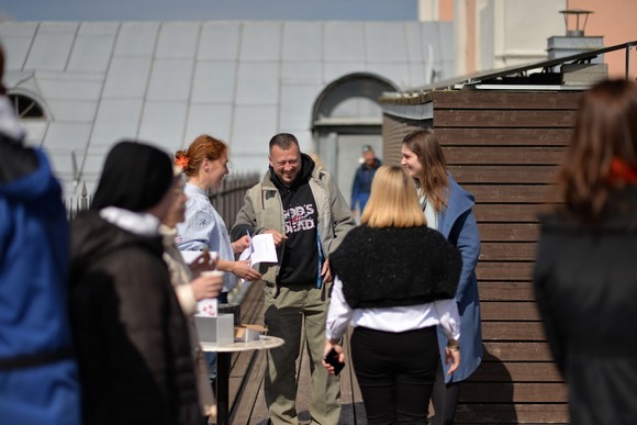 Išgirdę įkvepiantį Kauno arkivyskupo Kęstučio Kėvalo sveikinimo žodį, susirinkusieji žygiavo „NUO STOGO ANT STOGO“ – nuo Kauno Šv. Pranciškaus Ksavero (jėzuitų) bažnyčios iki Kristaus Prisikėlimo bazilikos stogų (terasų). Šviesos kelią sudarė 14 sustojimų, kuriuose buvo apmąstomi įvykiai po Jėzaus prisikėlimo. Keliuose iš sustojimų dalyviai išgirdo skirtingų pašaukimų atstovų liudijimus. Savo pašaukimo į vienuolinį gyvenimą istorija dalijosi sesuo benediktinė Magdalena Marija Vaitekūnaitė. Apie pašaukimą į šeimą kalbėjo Tomas ir Virginija Jundulai. Atsakingasis už pašaukimų sielovadą kunigas Liutauras Vilėniškis pasidalijo savo kunigiškojo pašaukimo liudijimu. O diakonas Darius Chmieliauskas pristatė visų pašaukimą į šventumą.