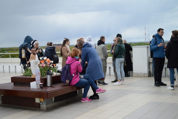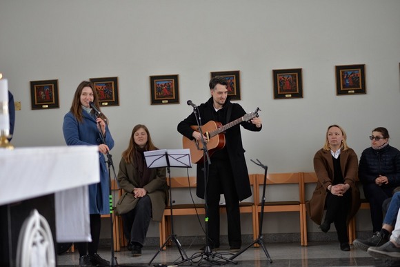 Šviesos kelią vainikavo Švč. Sakramento adoracija Prisikėlimo bazilikos koplyčioje ant stogo (terasoje). Melstis giesme padėjo šlovinimo grupė „Iš nieko“.