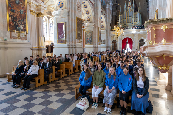 Gegužės 27 d. Kauno arkivyskupo Kęstučio Kėvalo ir Kauno m. savivaldybės Švietimo skyriaus vedėjos Onutės Gucevičienės pakviesti miesto gimnazijų abiturientai, jų tėveliai, mokytojai bei mokyklų vadovai susirinko į Kauno arkikatedrą baziliką bendra malda apkabinti šio svarbaus jų gyvenimo laikotarpio – egzaminų sesiją bei studijų ir gyvenimo krypties apsisprendimo momentus.