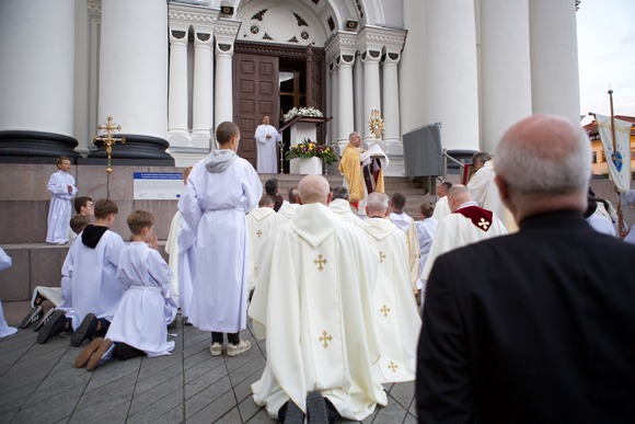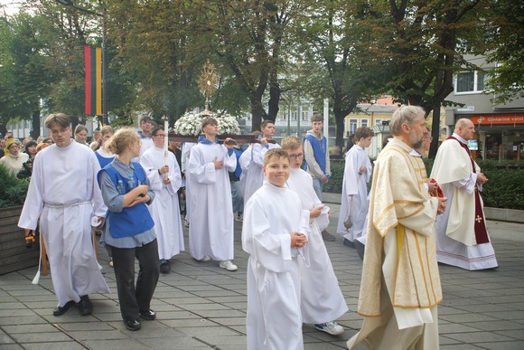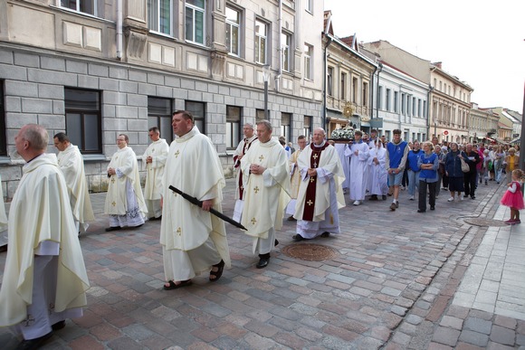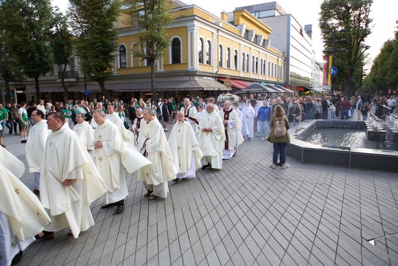 Dievą garbinanti ir su Juo keliaujanti minia iš Kauno arkikatedros ėjo link Šv. arkangelo Mykolo (Įgulos) bažnyčios. Procesija sustojo keturiose miesto erdvėse pagarbinti Švenčiausiojo, klausytis skelbiamų visų keturių Evangelijų (pagal Matą, Morkų, Luką, Joną) ir diakonų homilijų komentarų.