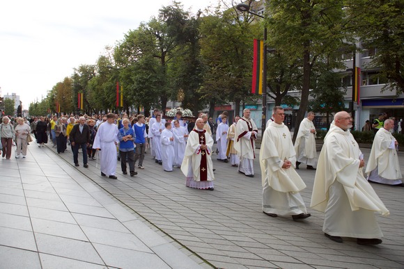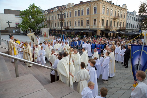 Švenčiamą Eucharistiją koncelebravo kardinolas Sigitas Tamkevičius, augziliaras vyskupas Saulius Bužauskas, daugiau kaip 10 mieste tarnaujančių kunigų. Patarnavo nuolatiniai diakonai. Tarp švenčiamos Eucharistijos ir vėliau procesijos dalyvių buvo bent penkių kongregacijų seserys vienuolės, parapijų tikintieji, susirinkę su savo vėliavomis, taip pat jaunieji savanoriai, suburti Jono Pauliaus II piligrimų centro.