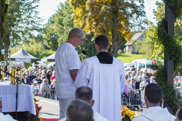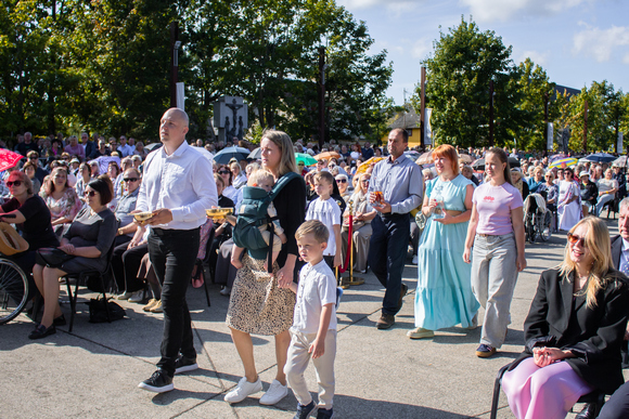 Šeimų ir vaikų klegesys, jų malda ir džiaugsmas rugsėjo 13-osios vidudienį pripildė Šiluvos aikštę. Joje pagrindinėms iškilmėms tradiciškai telkė Rožinis, o kartu su arkivyskupu Kęstučiu Kėvalu jį apmąstė ypatingas atlaidų svečias, antrą kartą atvykstantis švęsti Mergelės Marijos Gimimo Lietuvoje, apaštalinis nuncijus Ukrainoje arkivyskupas Visvaldas Kulbokas.