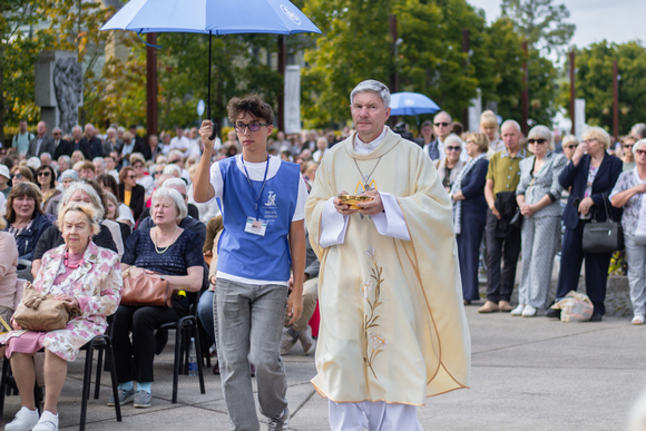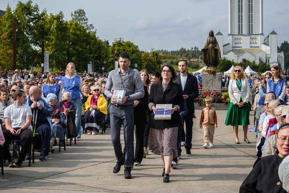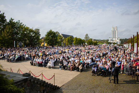 Sekmadienio Eucharistija buvo švenčiama pilnutėlėje Šiluvos aikštėje, kur pats Viešpats dovanojo taikų dangų ir galimybę įsijungti į šioje žemėje jau daugiau kaip 500 nenutrūkstantį Dievo garbinimą.