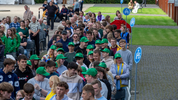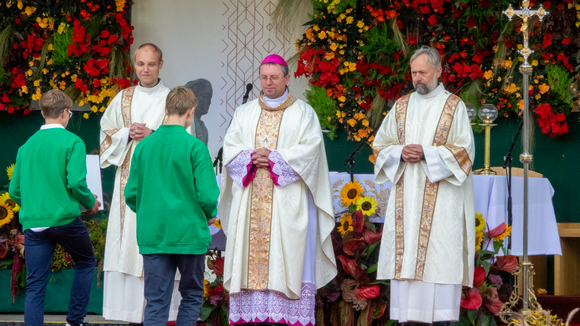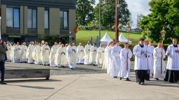 Šiluva rugsėjo 15-ąją buvo pripildyta jaunų žmonių klegesio ir natūralaus džiaugsmo nuo pat ryto – jau 10 val. šv. Mišias šventė jaunesnieji moksleiviai, o vyresnieji skubėjo į iškilmingą Eucharistiją vidudienį.