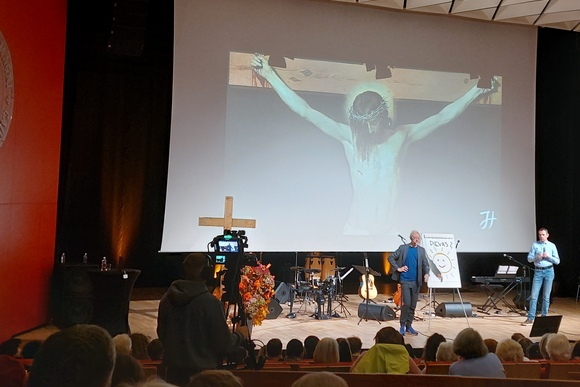 Programoje laukė ypatinga susitikimas – po išvakarėse vykusio krikščioniškųjų bendruomenių sambūrio Kaune, Lietuvos svečias Johannesas Hartlas, pasaulyje žinomas teologas ir Dievo meilės liudytojas, filosofas, rašytojas, be to, ir keturių vaikų šeimos tėvas, Atsinaujinimo dienos dalyviams pasiūlė pranešimą apie Dievo šlovę ir grožį. Kaip ir pats sakė, apie tai nedažnai kalbama mūsų bažnyčiose, kur kalbama apie viską, bet mažai apie Dievą.