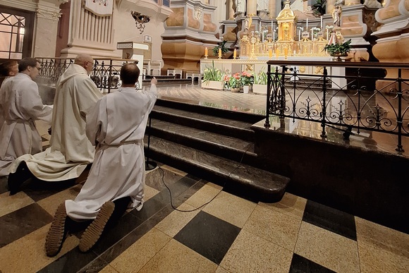 Spalio 22 d. Kauno arkivyskupo Kęstučio Kėvalo kvietimu arkivyskupijos tikybos mokytojai ir katechetai, kaip ir kiekvieną paskutinį mėnesio trečiadienį, Kauno arkikatedroje bazilikoje susirinko į bendrą maldą – Švenčiausiojo Sakramento adoraciją, Rožinį ir Eucharistijos šventimą.