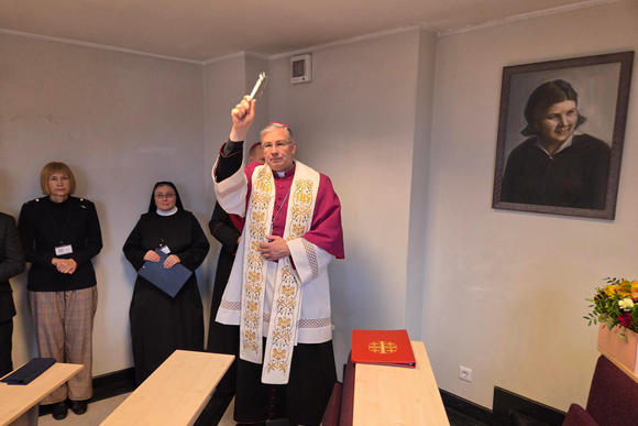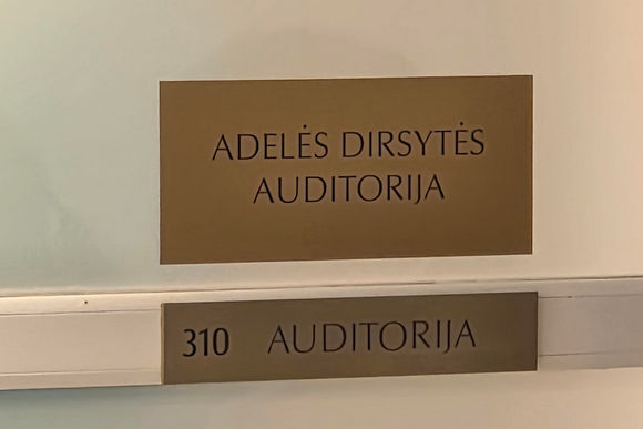 Adelės Dirsytės giminaitei Aušrai Valevičienei atidengus žyminčią lentelę, šią auditoriją ir joje pakabintą dailininko Vaido Šukio sukurtą Dievo tarnaitės paveikslą palaimino Kauno arkivyskupas metropolitas Kęstutis Kėvalas.