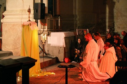 Šiuose vakaruose, kaip ir tą spalio 30 d. vakarą, susirinkusieji turi puikią progą pašlovinti Dievą giesme. „Naujosios Sandoros“ bendruomenė kviečia visus kartu džiaugsmingai šlovinti (iš anksto pasirūpinant giesmių tekstais, kad jie būtų matomi bažnyčioje visiems vakaro dalyviams).