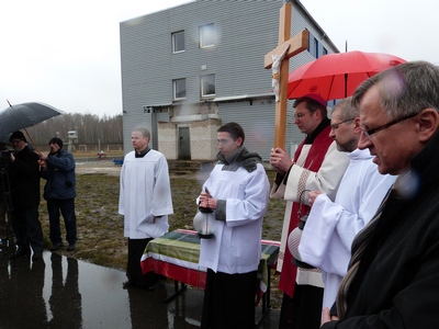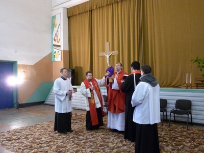 Vėliau klubo salėje (kolonijos koplytėlėje būtų netilpę) beveik 200 žmonių šventė Paskutinės vakarienės Eucharistiją, kartu su nuteistaisiais dalyvavo ir kolonijos vadovybės atstovų. Liturgijai vadovavęs vyskupas Kęstutis drąsino, jog visi žmonės, ne tik už kalėjimų sienų, yra nusidėjėliai ir silpni, ir kiekvienam žmogui reikia Dievo pagalbos. Laimė tarnauti kitam – šią didžią meilės artimui pamoką paliko Viešpats Jėzus pasilenkdamas prie savo mokinių ir plaudamas savo mokiniams kojas. Tai atmenant ypatinga Didžiojo ketvirtadienio Paskutinės vakarienės Mišių apeiga buvo kojų plovimas: jas vyskupas Kęstutis tą valandą nuplovė 12-kai kalinių.