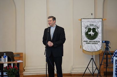 Gausiai susirinkusius sutuoktinius, sužadėtinius, Šeimos centro savanorius ir besidarbuojančius šeimų sielovados srityje pasveikino arkivyskupijos augziliaras vyskupas Kęstutis Kėvalas. „Mūsų visuomenėje yra dvi tabu temos: Dievas ir seksas. Todėl sveikintina, kad Šeimos centras kviečia kalbėtis šiomis temomis”, – kalbėjo ganytojas.