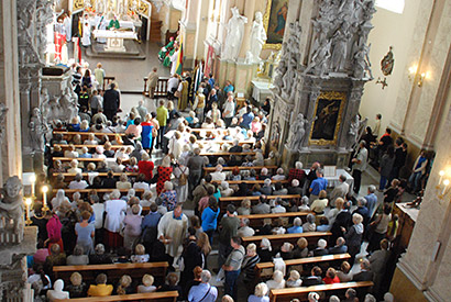 Eucharistiją koncelebravo vėliau homiliją pasakęs arkivysk. emeritas S. Tamkevičius, vysk. K. Kėvalas, piligrimų nuo Tytuvėnų su malda atvedęs Šiaulių vysk. E. Bartulis, „Marijos radijo“ programų direktorius kun. Gintaras Blužas. Pamaldose giedojo VDU Katalikų teologijos fakulteto choras „Veritas“, vad. Vitos Liaudanskaitės-Vaitkevičienės.