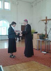 Po šv. Mišių tikybos mokytojai rinkosi į arkivyskupijos konferencijų salę, minėdami jau 25-ąjį artėjantį rudenį, kai gali Dievo žodį skelbti mokyklose. Buvo paminėti ir pagerbti tikybos mokytojai, kurie jau 25-erius metus darbuojasi, skelbdami Evangeliją švietimo įstaigose. Mokytojai klausėsi vokalinio ansamblio „Musicalis“ (vadovė Jurgita Vichrovė) parengtos programos.