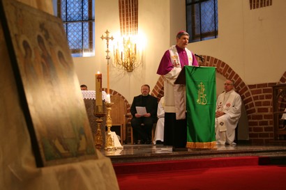 Trumpą žodį taręs arkivysk. L. Virbalas paliudijo apie puikiai tarpusavyje sutarusių krikščionių bendrystę gimtuosiuose Biržuose bei jam tarnaujant Popiežiškojoje Šv. Kūdikėlio Jėzaus Teresės Russicum kolegijoje. Ganytojas atkreipė dėmesį į popiežiaus Pranciškaus bendrojoje audiencijoje (kurioje arkivyskupas tą savaitę dalyvavo su jaunimo grupe iš Kauno) pasakytus žodžius apie Latvijos liuteronų katedros krikštyklą, kuri yra visų Latvijos krikščionių pradžios, šaltinio ženklas. Krikštas pašaukia iš tamsos, iš nuodėmės, įskiepija Kristuje, sujungia krikščionis Jame.