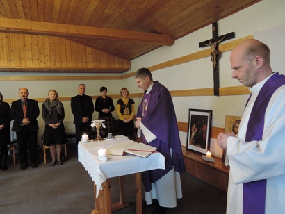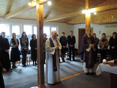 Rekolekcijų dalyviai Jėzuitų namų koplyčioje drauge meldėsi Valandų liturgijos malda (Rytmetinę ir Dieninę), tarp konferencijų šventė Eucharistiją, popiet lauke ėjo Kryžiaus kelią.