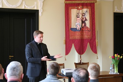 Kun. Artūras Kazlauskas kalbėjo zakristijonams apie labai praktinius jų tarnavimo dalykus: kaip tvarkyti liturginius reikmenis, pabrėždamas vengti butaforijos, pastebėdamas, kaip svarbu, kad liturgijoje naudojami dalykai tarpusavyje derėtų savo medžiaga ir forma. Kalbėjo apie liturginių drabužių švarą, visą tvarką darbinėje erdvėje – zakristijoje, kurioje saugomi reikmenys turėtų būti surūšiuoti, kasmet peržiūrimas jų reikalingumas. Zakristijonai turėtų būti klebonų dešinioji ranka ir pagalbininkai šioje srityje.