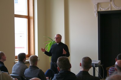 Kun. M. Grigalius kalbėjo apie gestus ir laikyseną liturgijos metu. Liturgijos laikas, pasak svečio kunigo, yra mums šventas. Tai visai bendruomenei, susirinkusiai švęsti, išskirtinis ir iškilmingas laikas. Daugiau dėmesio buvo skirta procesijoms bei šv. Mišioms – kokiais gestais ir laikysena atsiliepiame, švenčiame, ypač kalbant apie zakristijonų tarnystę.