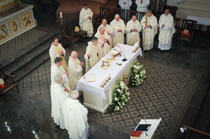 Eucharistiją koncelebravo apaštališkasis nuncijus arkivyskupas Pedro López Quintana, kardinolas Audrys Juozas Bačkis bei Lietuvos vyskupai: Kaišiadorių vyskupas Jonas Ivanauskas, Šiaulių vyskupas Eugenijus Bartulis, Telšių vyskupas Jonas Boruta, Vilkaviškio vyskupas Rimantas Norvila, Kaišiadorių vyskupas emeritas Juozas Matulaitis, Panevėžio vyskupai emeritai Juozas Preikšas ir Jonas Kauneckas. Eucharistiją kartu šventė daugiau kaip pusšimtis kunigų, patarnavo Kauno kunigų seminarijos klierikai.