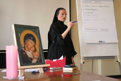 Seminarus vedė sesuo benediktinė Agnietė Ivaškevičiūtė bei Vaida Spangelevičiūtė-Kneižienė. Kurijos sielovados programų koordinatorė pasidalijo džiaugsmu kalbėti drauge su seserim benediktine, su kuria susipažino maldos grupėje dar mokykliniais laikais.