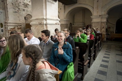 Po šokių ir dainų jaunimas grįžo į Šv. Jurgio (pranciškonų) bažnyčią susikaupimui ir vakaro maldai bei Švenčiausiojo Sakramento adoracijai. Kun. Aldonas Gudaitis SJ visus paskatino nebijoti ir grįžti prie Dievo gailestingumo ir meilės per Atgailos sakramentą. Tai padaryti jaunimui padėjo kunigai iš visos arkivyskupijos. Adoracijos metu šlovino jėzuitų jaunimo choras „Exaudi“.